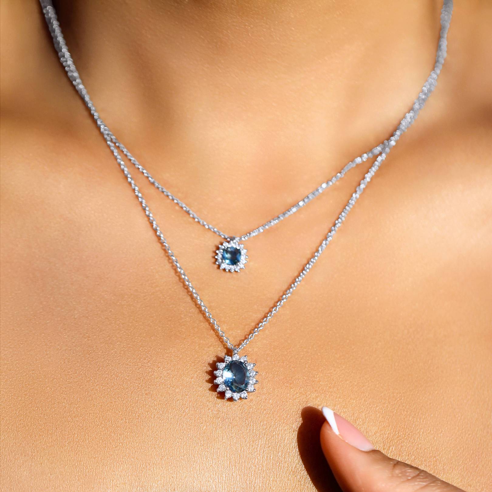 Blue Topaz Halo Necklace & Earrings